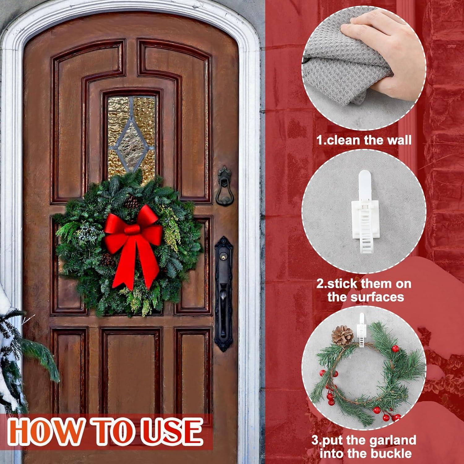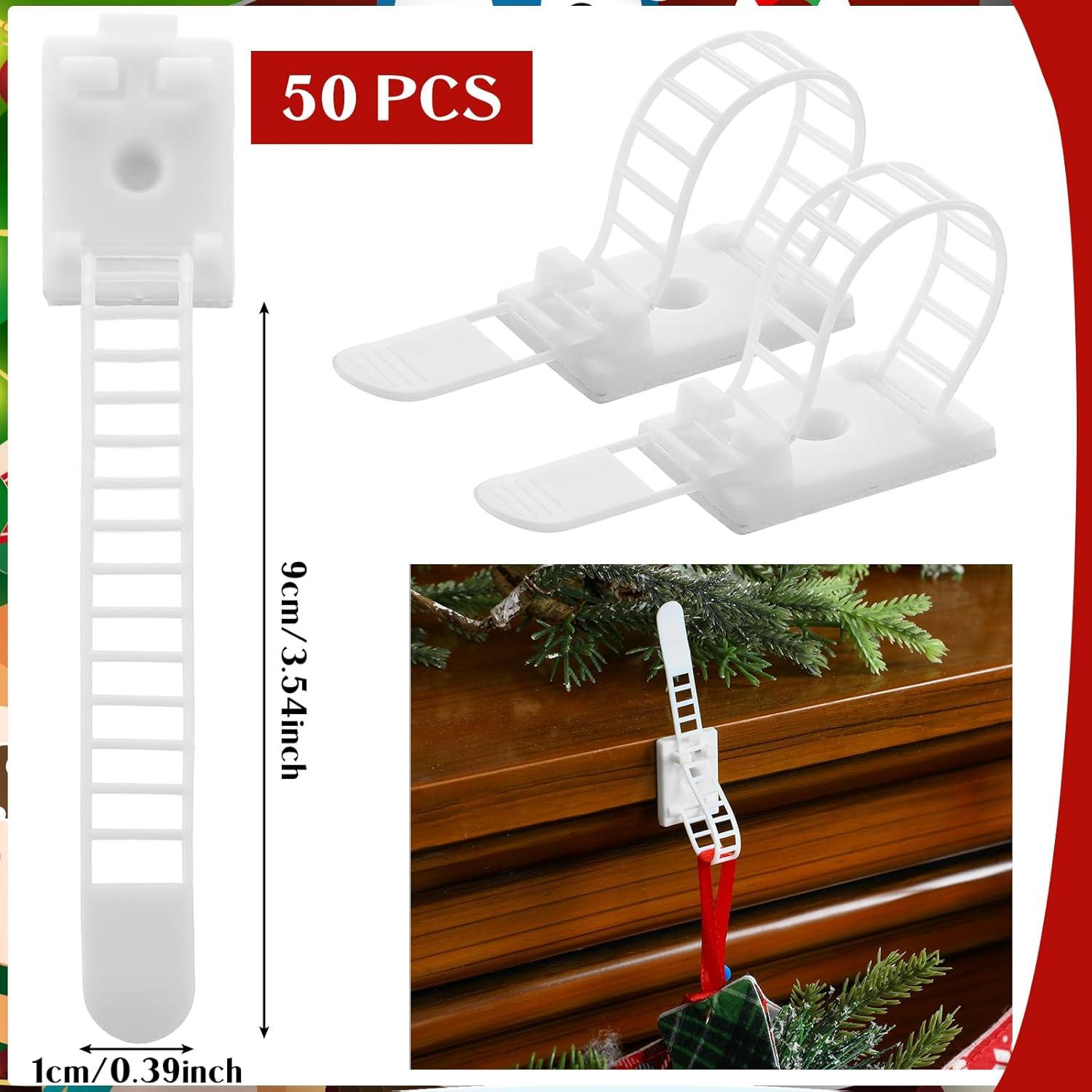 Garland Hangers for Front Door Adjustable Christmas Garland Hooks Ties Hanging Strips Straps for Mantle Fireplace String Light Window Xmas Stocking Wreath Decorations(White,50 Pcs)(White)