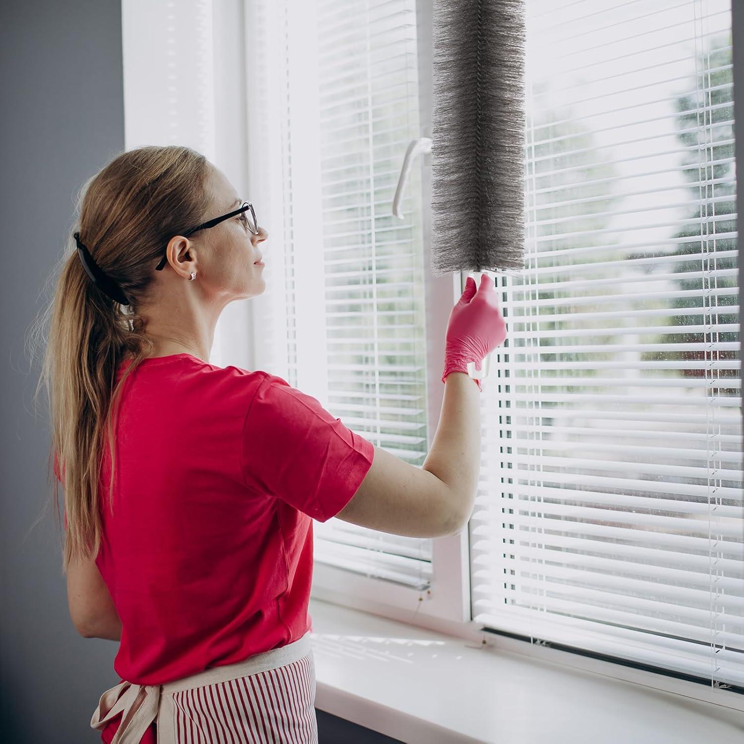 Sliner 2 Pcs Cobweb Duster Bendable Fan Duster Plastic Dust Cleaner Microfiber Head Ceiling Brush Reusable Dirt Remover for Fan Air Conditioning Home Vents Shutters (Blue)(Gray)