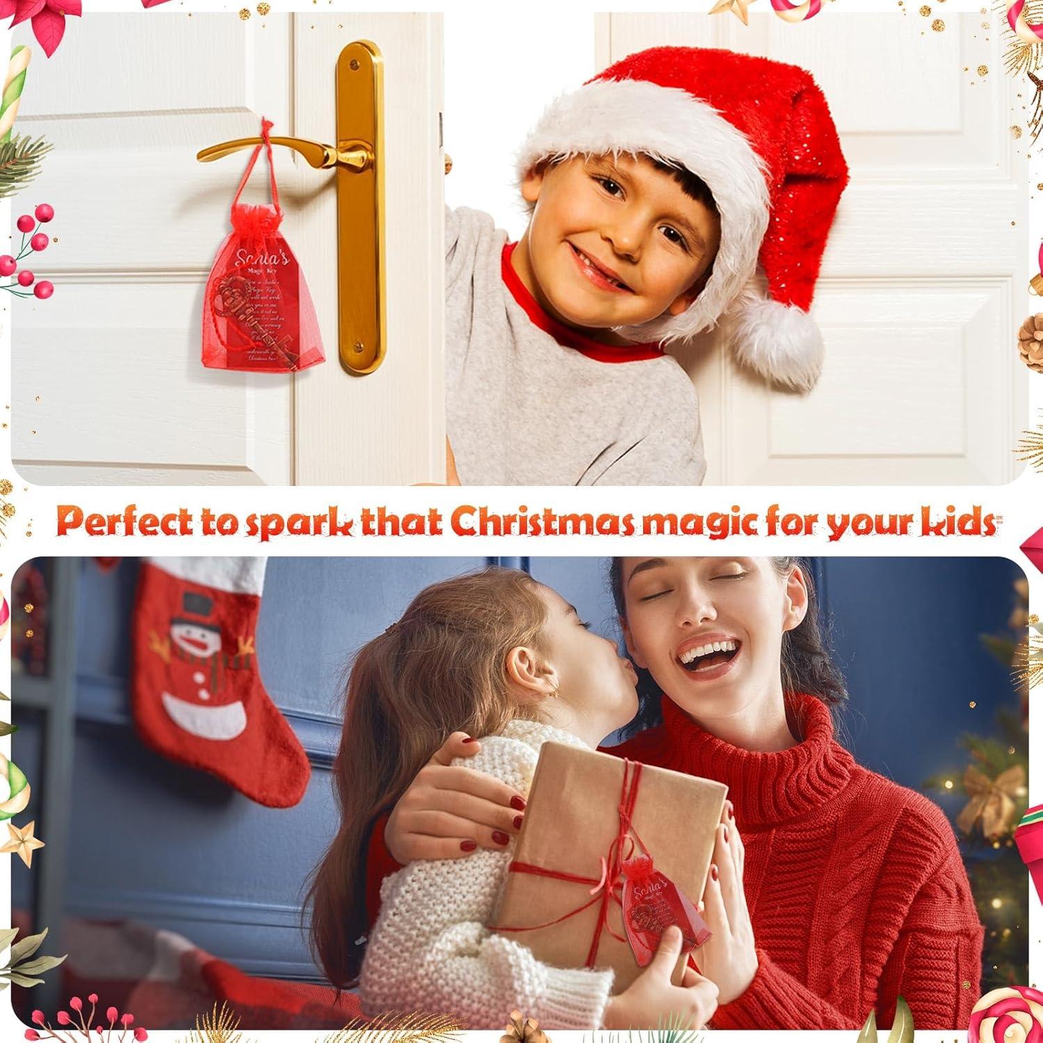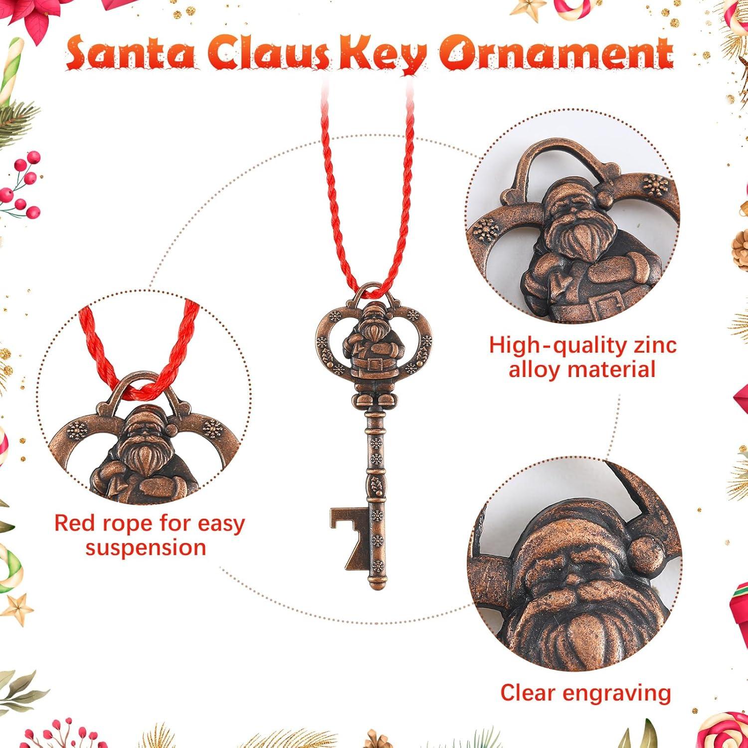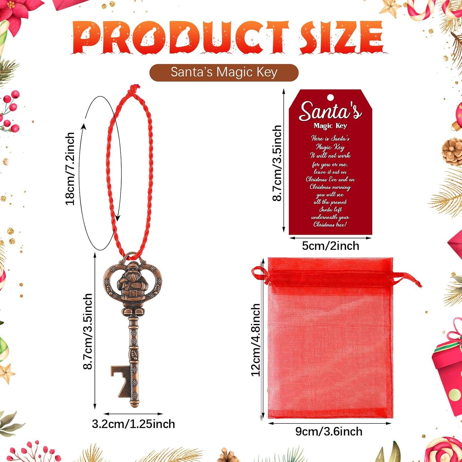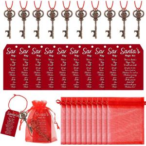 Sliner 20 Set Christmas Santa Key Ornament for No Chimney Houses Vintage Metal Skeleton Charm Key with Santa Claus Card and Red Mesh Bag for Christmas Tree (Red,Black)(Red)