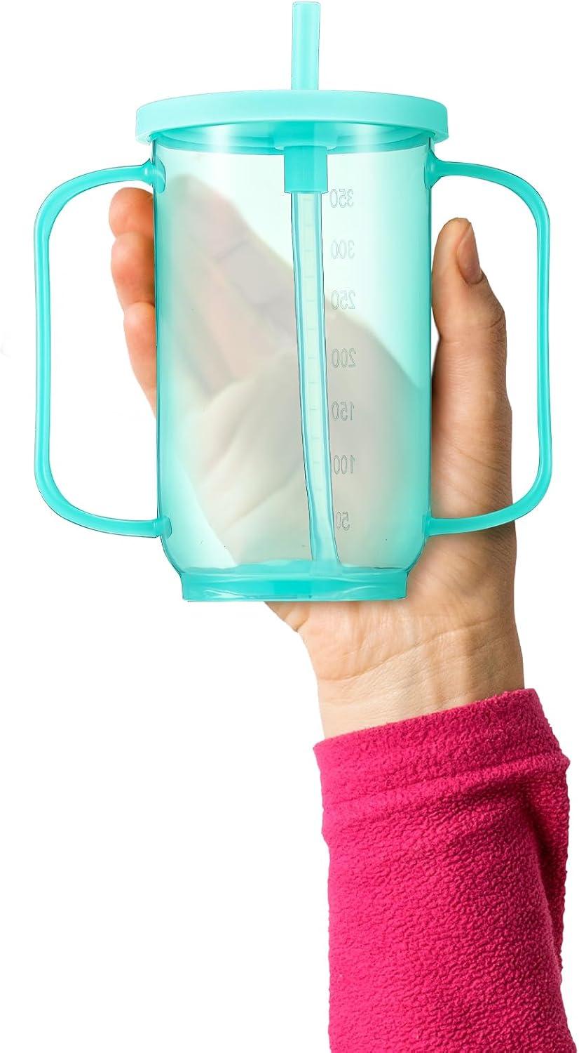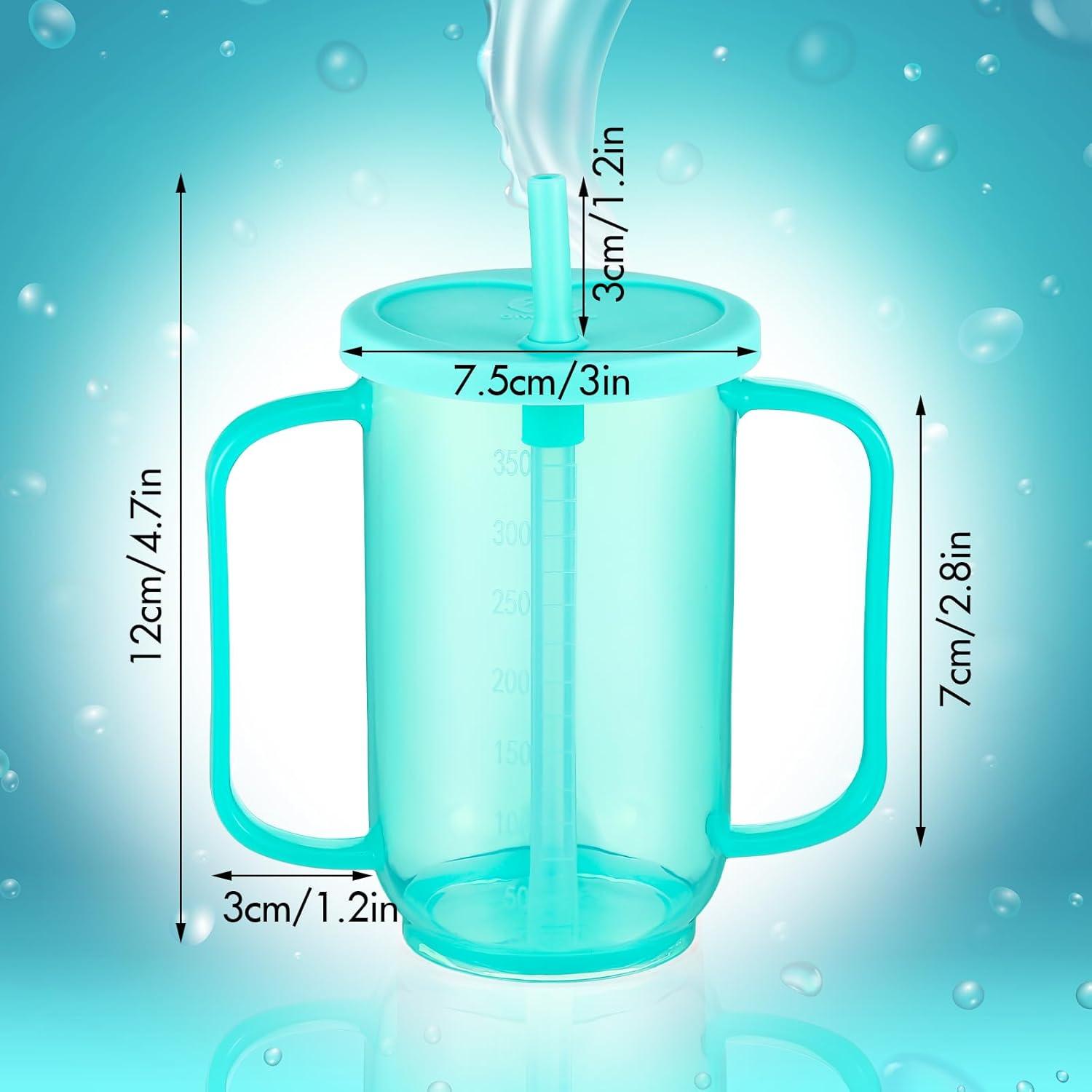 Sliner 3 Pcs Adult Sippy Cups for Elderly, 12 oz Plastic Spill Proof Cups with 2 Handles Straw and Lid for Adults Hospital Disabled Dysphagia Patients (Blue)(Blue)
