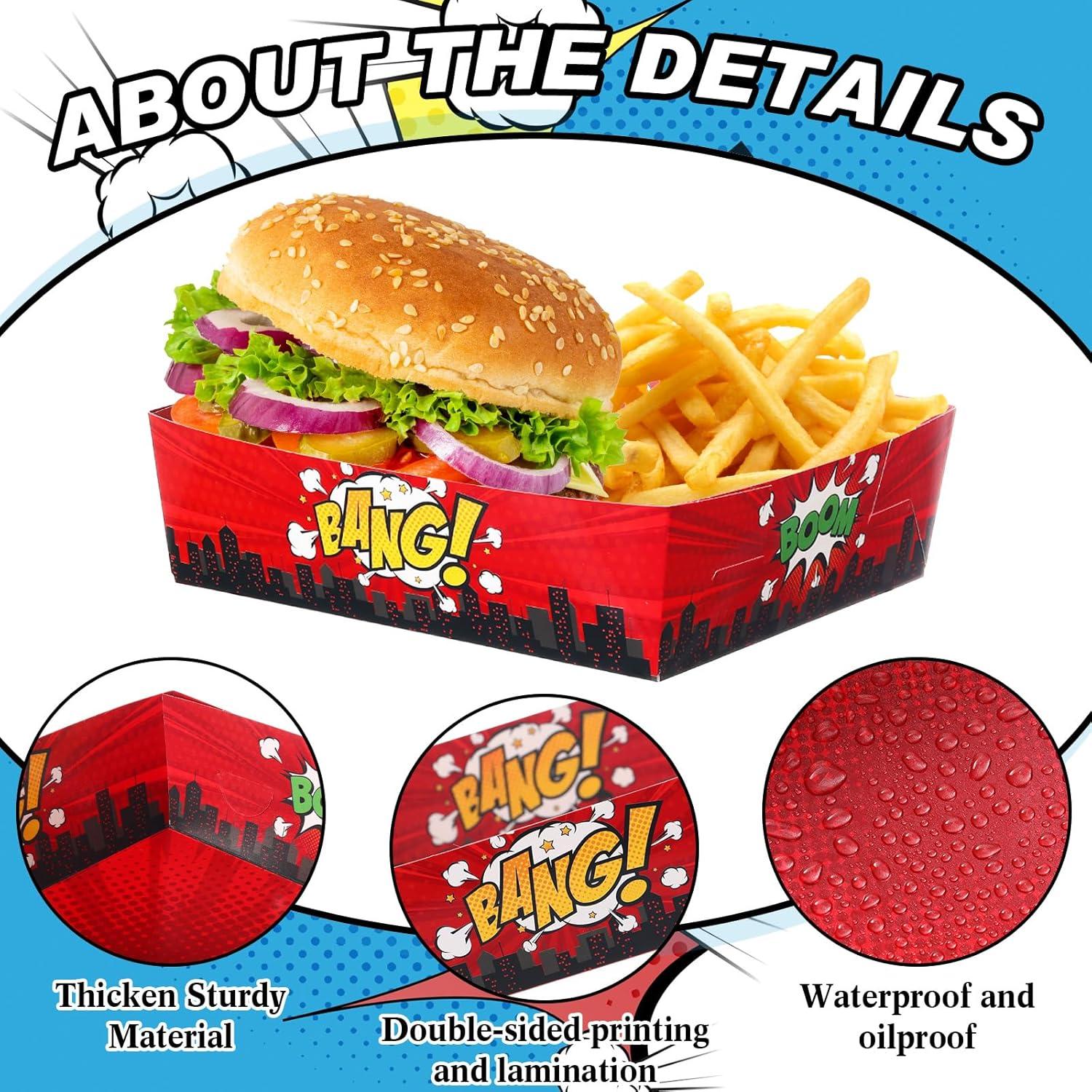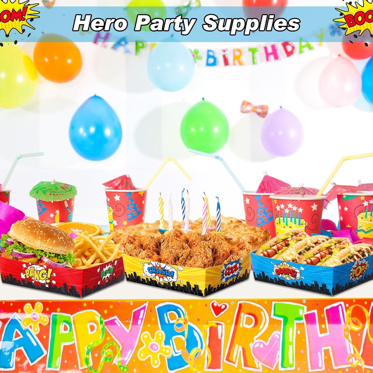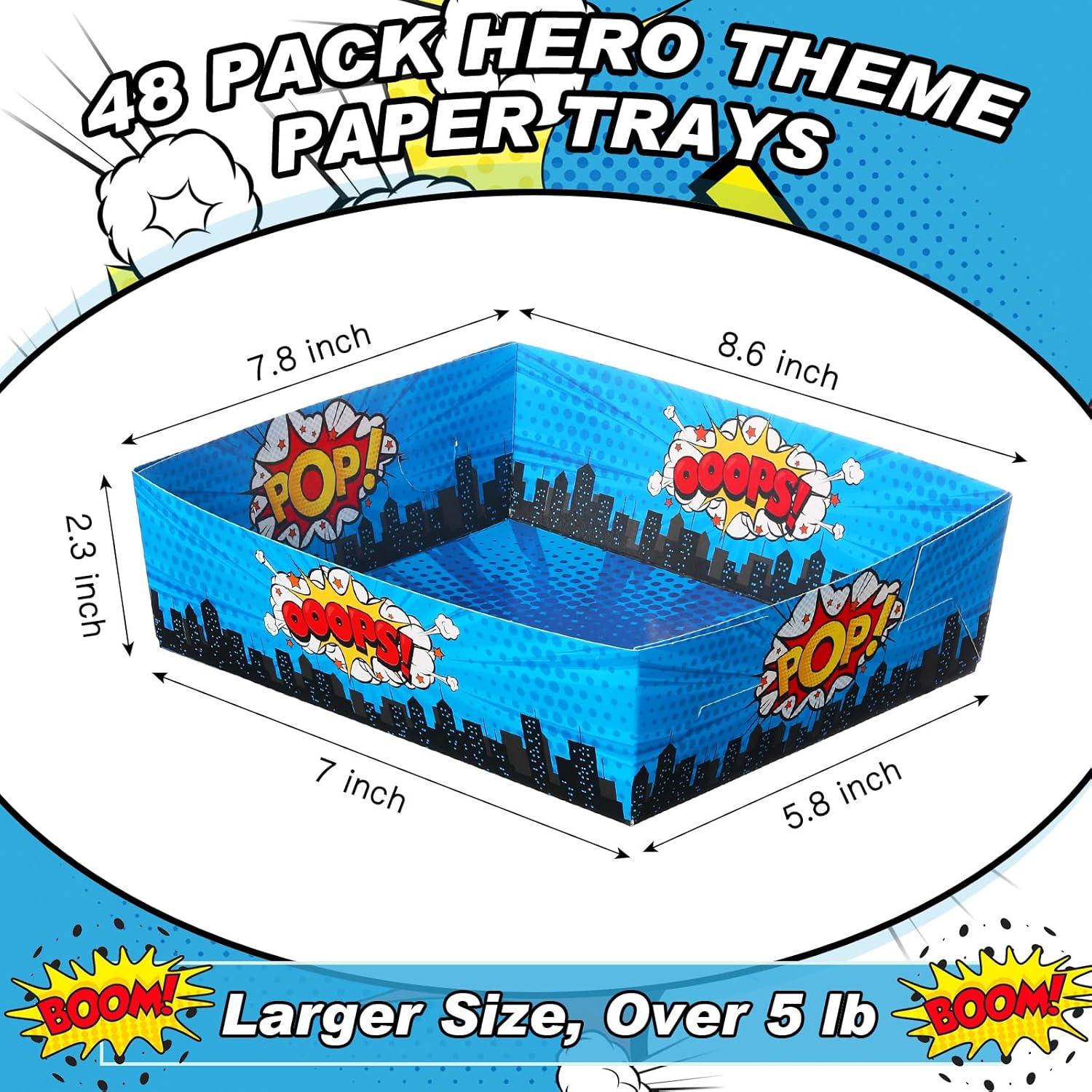 Sliner 48 Pcs Hero Theme Birthday Party Supplies 5Lb Large Hero Food Trays Party Favors Food Boats Snack Paper Trays for Birthday Decorations(Boy)(Boy)