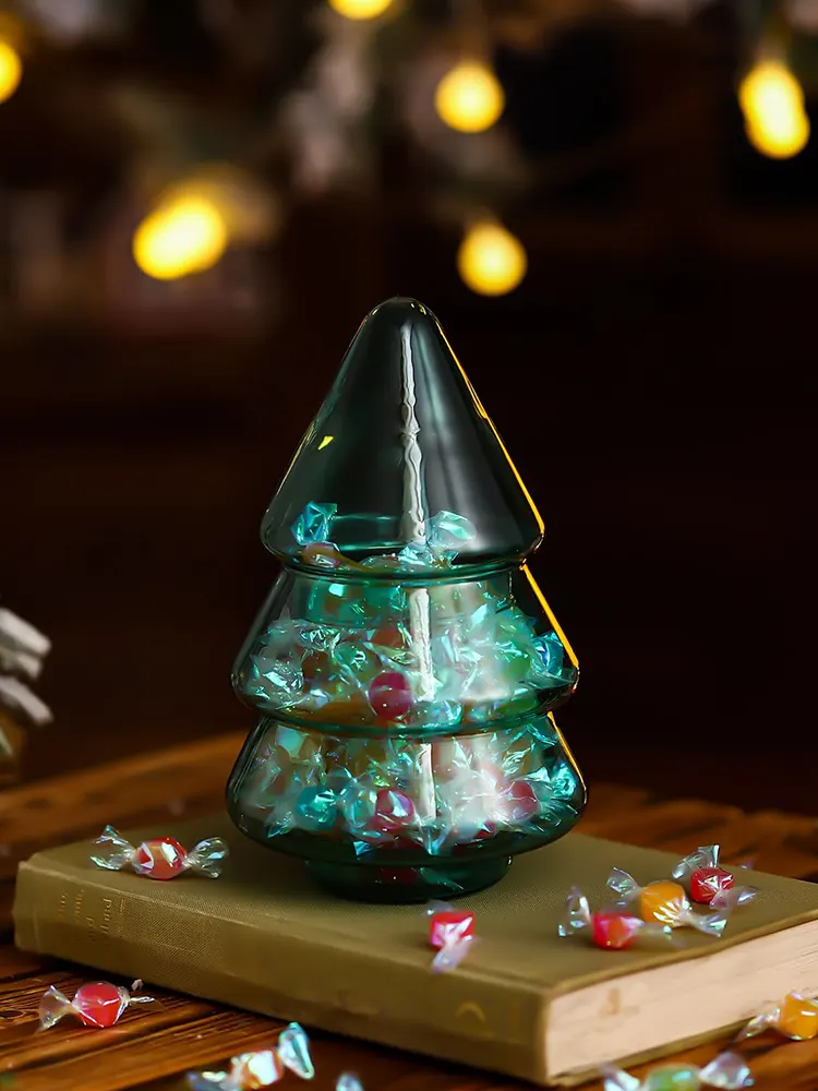 Christmas tree-shaped sealed jar—perfect for festive storage and holiday treats.