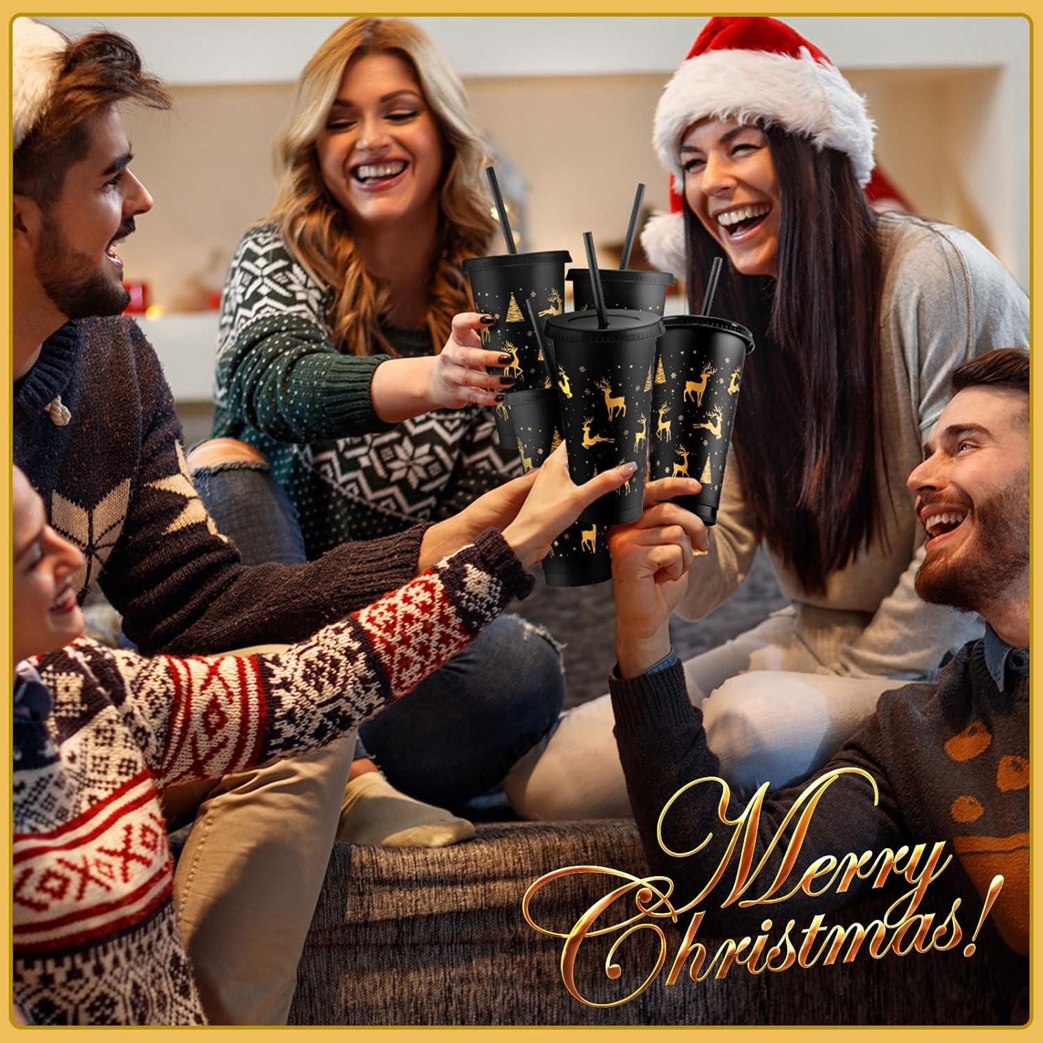 Novelty Christmas Pattern Design: the Christmas plastic cups are designed with delicate Christmas tree and reindeer patterns in golden print, can enhance a lot of festive atmosphere; Classic Christmas element themed tumbler is not only for drinking but for party decor as well, pair it with your Christmas theme party, holiday, new year gathering and so on