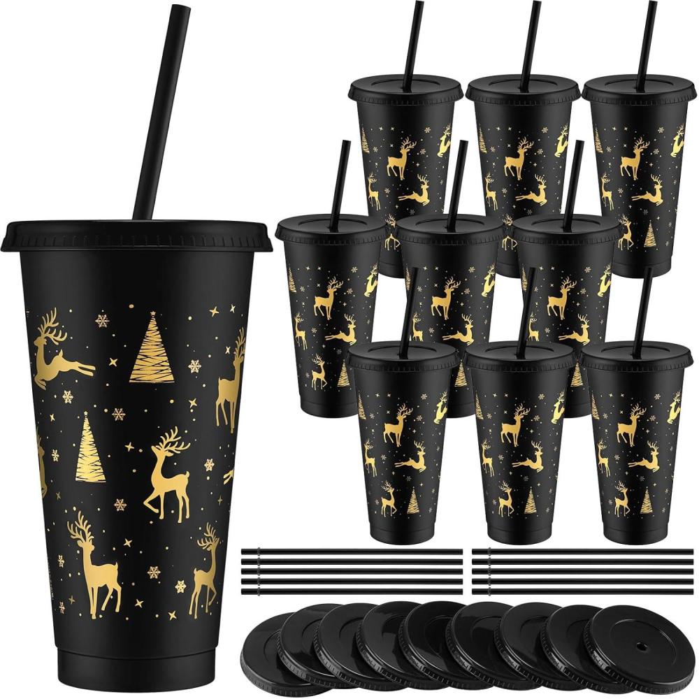 Durable and Reusable: this set contains 10 pieces of 24oz Christmas coffee cups, with 10 lids and 10 straws, the Christmas travel tumbler is made of PP plastic material, plastic tumblers with lids and straws are durable and reusable, ensure your safe drinking, you could use them as ice coffee cups or smoothie cups with a straw during parties. Scald Prevention: Suggest to avoid drinking hot liquids using plastic straws altogether