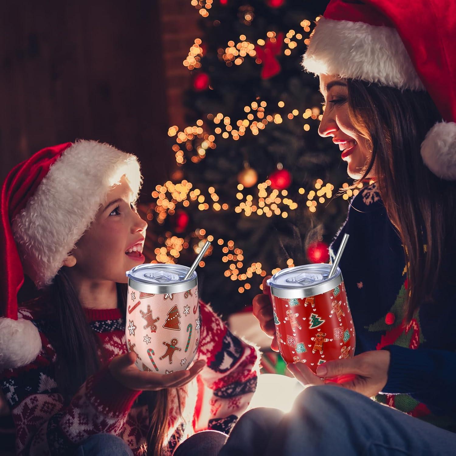 Sliner 12 Pack Christmas Wine Tumbler 12 oz Christmas Stainless Steel Wine Glass Christmas Gift Tumbler Cup with Straw and Brush Santa Elk Coffee Mug Holiday Gift for Xmas Party Favor (Snowman)(Gingerbread)