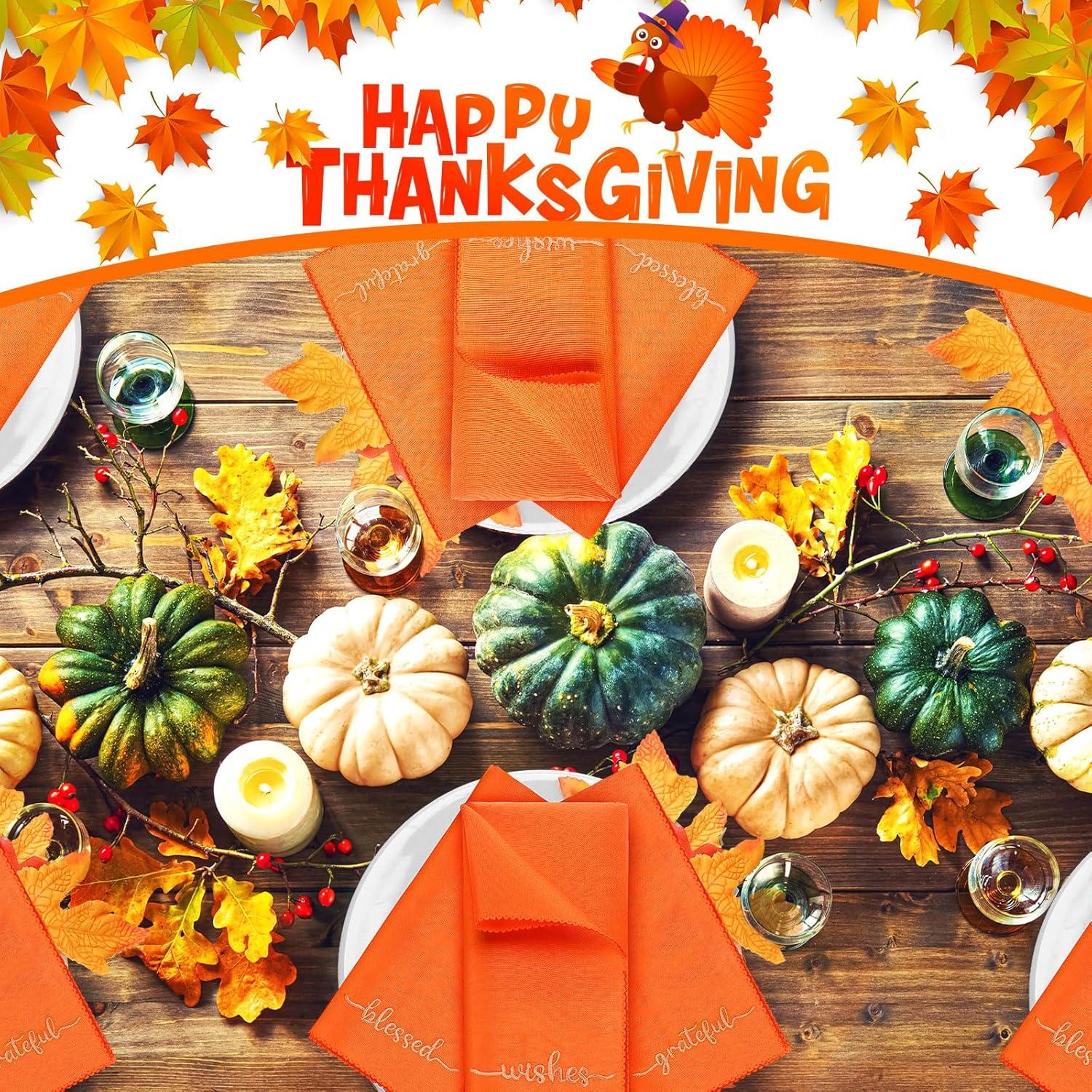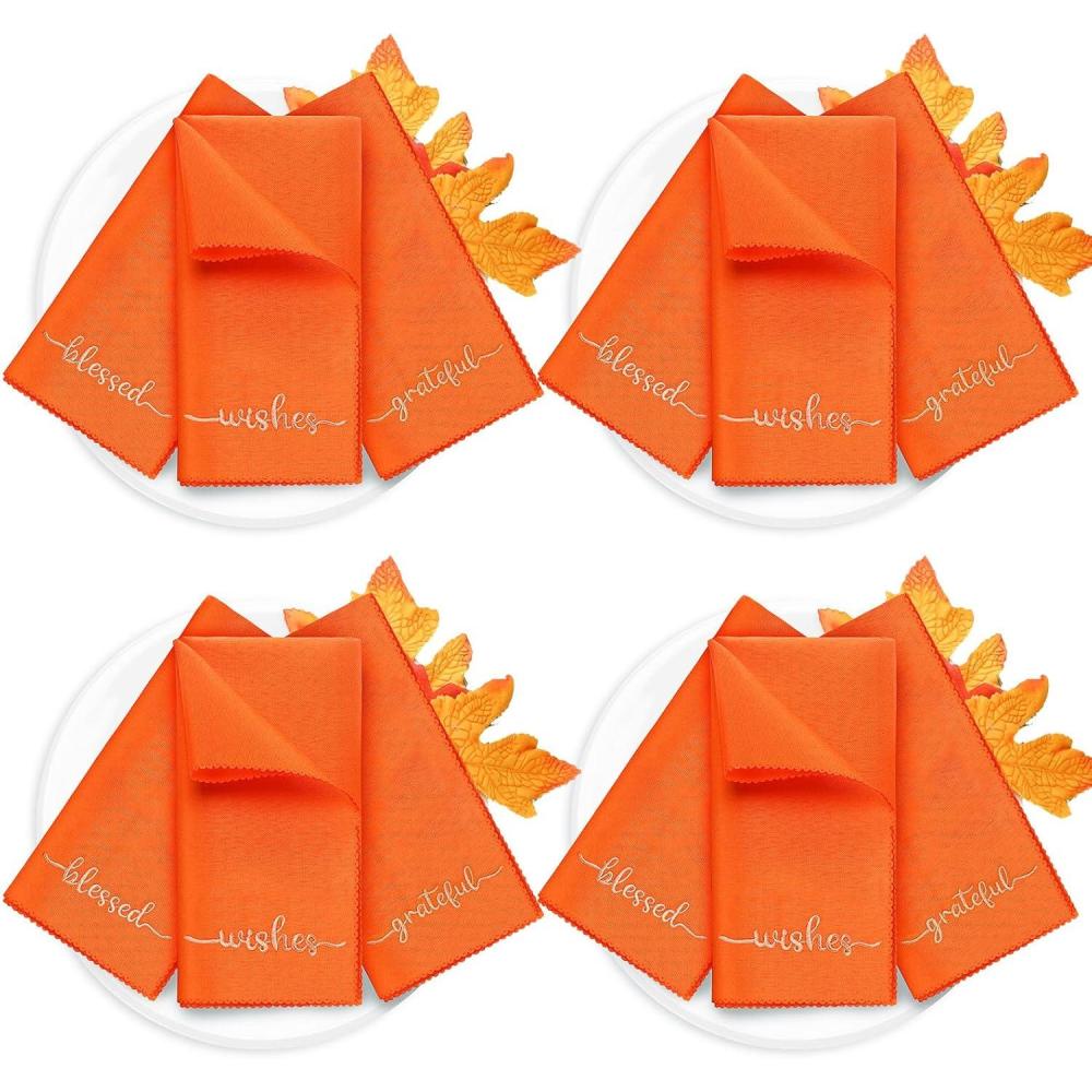 Sliner 12 Pcs Christmas Red Cloth Napkins Set 17 x 17 Inch Embroidered Seasonal Sayings Dinner Fabric Napkins Washable Wishes Grateful Blessed Merry Christmas Napkin for Holiday Kitchen Party(Orange)