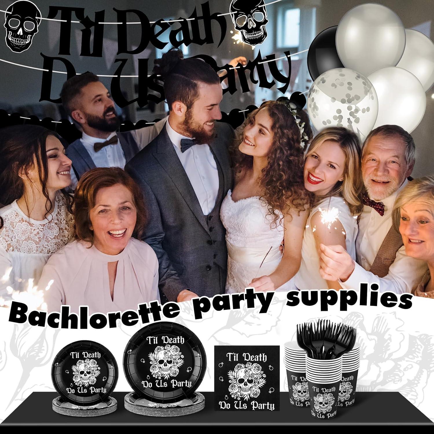 Sliner 141 Pcs Bride or Die Bachelorette Party Decorations Til Death Do Us Party Favors Wedding Plates and Napkins Banner Balloons Skull Gothic Wedding Tableware Supplies