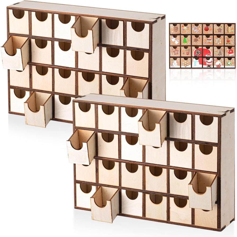 Package Include: you will receive 2 pieces of 24 drawer wooden advent calendars, the quantity is enough for you to share with your friends or classmates; This wooden advent calendar is suitable for storing candy, toy cars, hair clips and jewelry for a little surprise for your family and loved ones