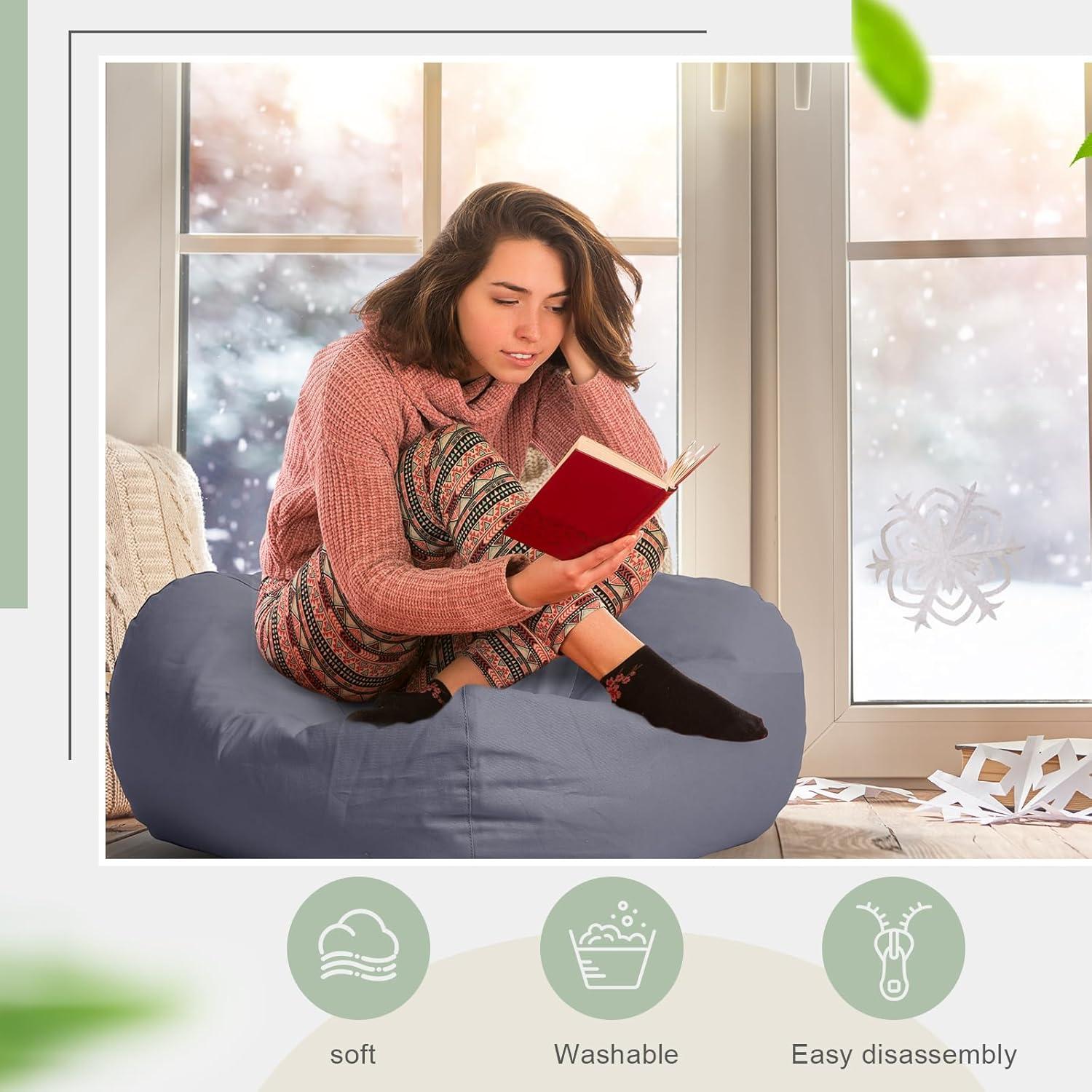 Practical Storage Solution: beyond just comfort, our bean bag chair cover doubles as a fun and creative storage solution; It's suitable for storing stuffed animals, blankets, pillows, and more, assisting in decluttering your space