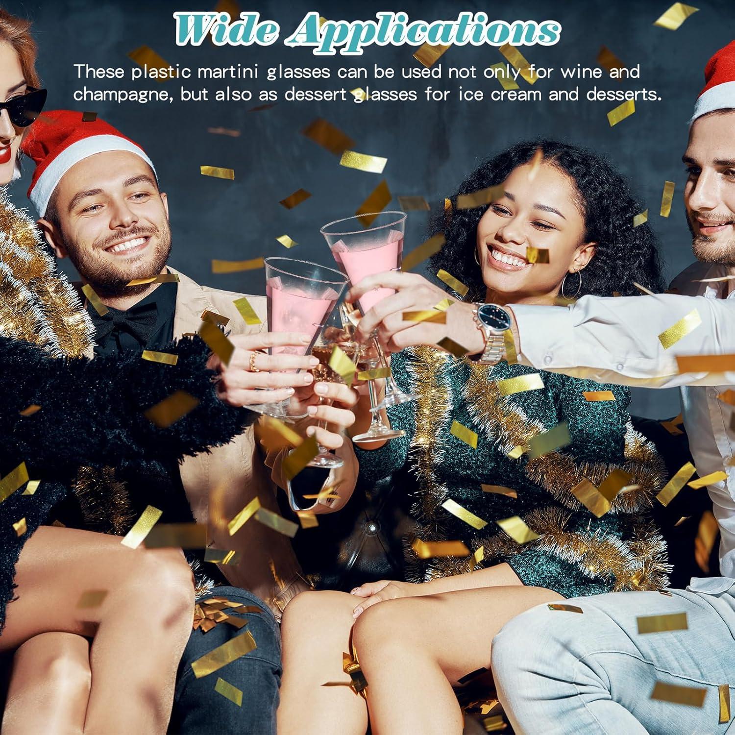 Plastic martini glasses have ample quantities and 2 sizes, so you can use them to hold different drinks or snacks, great additions for your various parties.