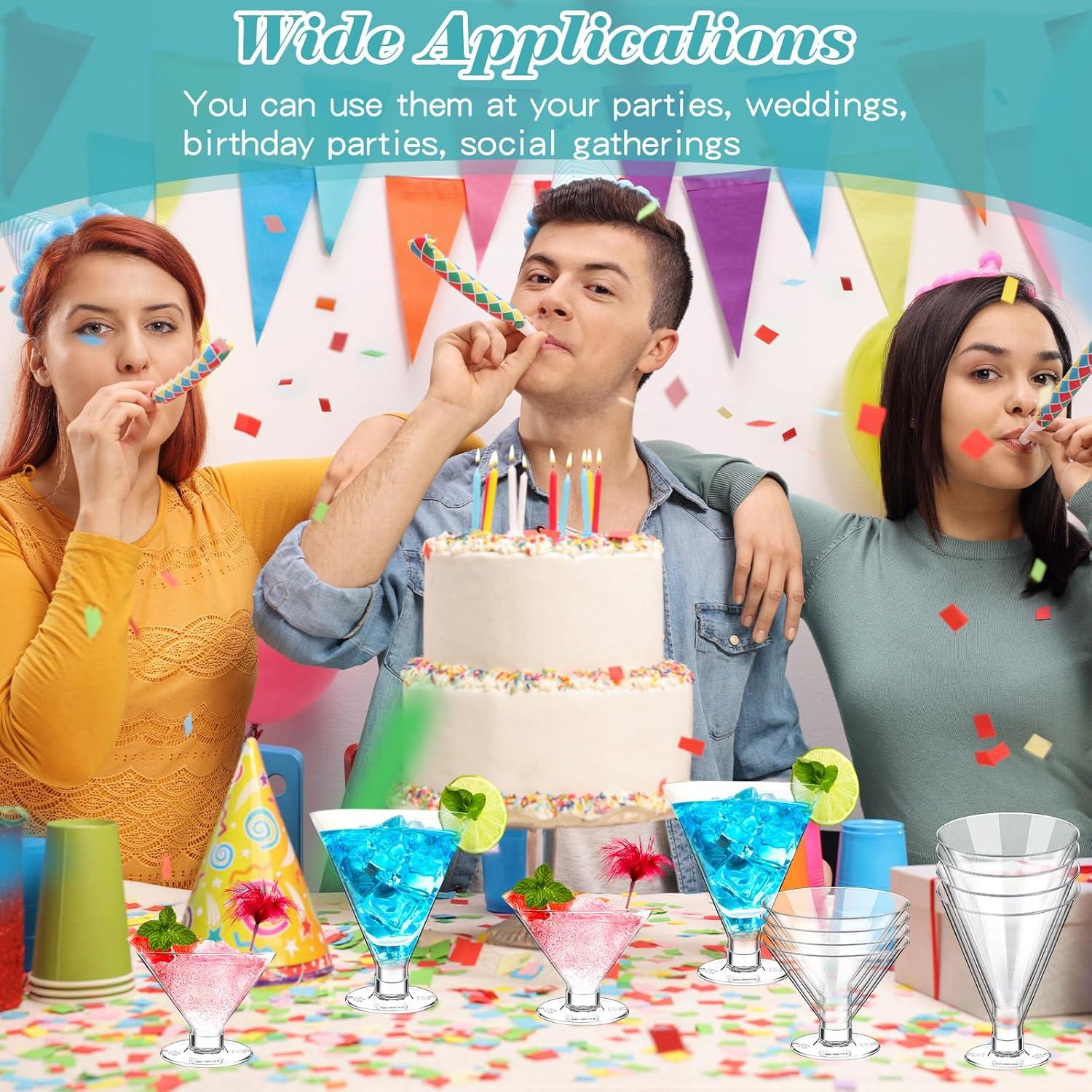 Suitable for: these clear plastic cocktail cups are suitable for holding coffee, cocktail, margarita, champagne, wine, martini, orange juice, lemon juice, dessert or ice cream, matched with fruit skewers are not only can adorn your drinks, but also convenient for people to pick fruits