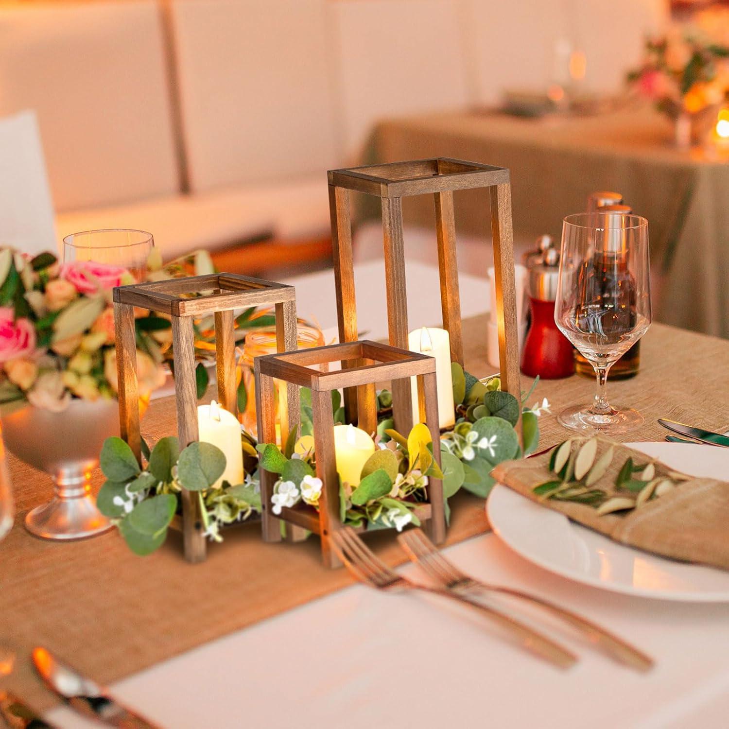 Crafted in Quality Wood Material: the rustic wedding decorations are a striking combination of creative design and quality; Made from resilient and durable natural wood, our wedding lanterns centerpieces ensure longevity and robustness; The wood lanterns present a sturdy construction, ensuring no deformation over time; The candle included in the set is made of LED, providing a warm candlelit atmosphere without actual fire
