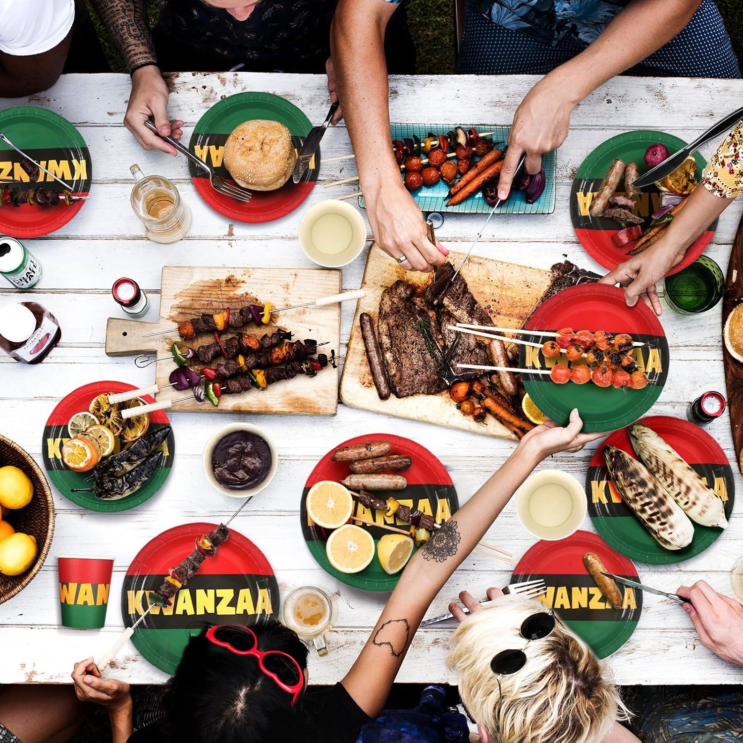 Sliner 250 Kwanzaa Party Supplies Kwanzaa 50 Plates 100 Napkins 25 Cups 75 Plastic Forks Knives Spoons Kwanzaa Decorations Serves 25 Kwanzaa Theme Tableware Set African Disposable Party Dinnerware