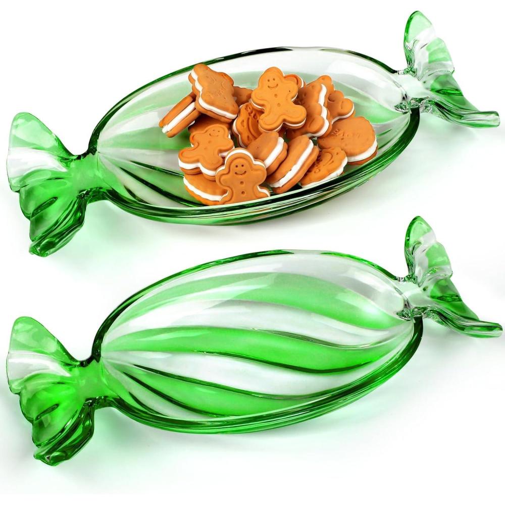 Quality and Dependable: our candy shaped decorative tray made of color quality glass, we use a thickened inner wall, so is not easy to damage, each fruit plate is an exquisite piece of art made by hand, smooth and delicate inside; It is a great holiday gift, home decoration