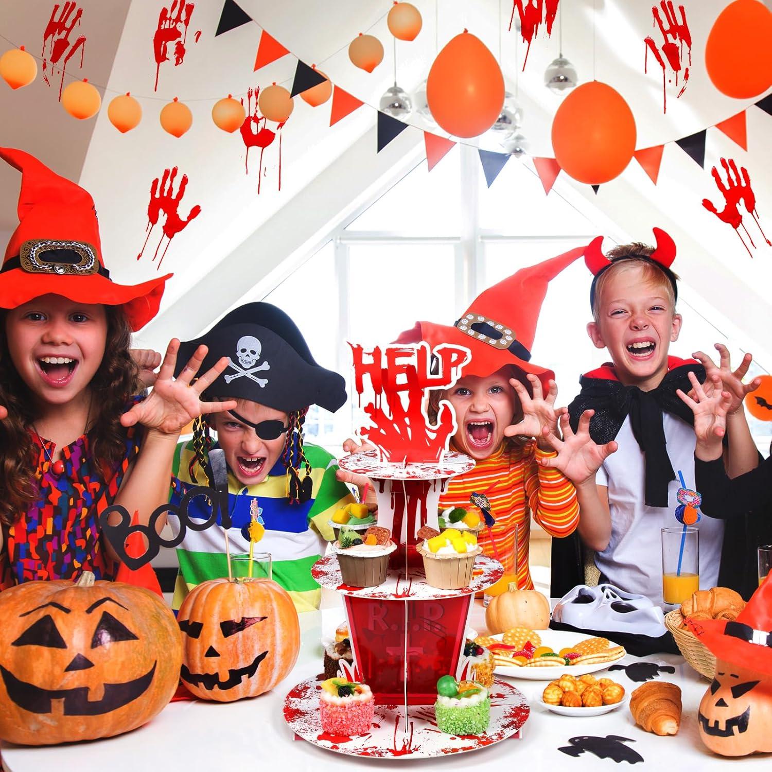 Sliner 3 Tier Halloween Bloody Cupcake Stand Party Decorations Bloodys Handprint Cupcake Holder Halloweens Bloodys Help Cake Holder Bloody Theme Dessert Stand for Horror Scary Party Supplies