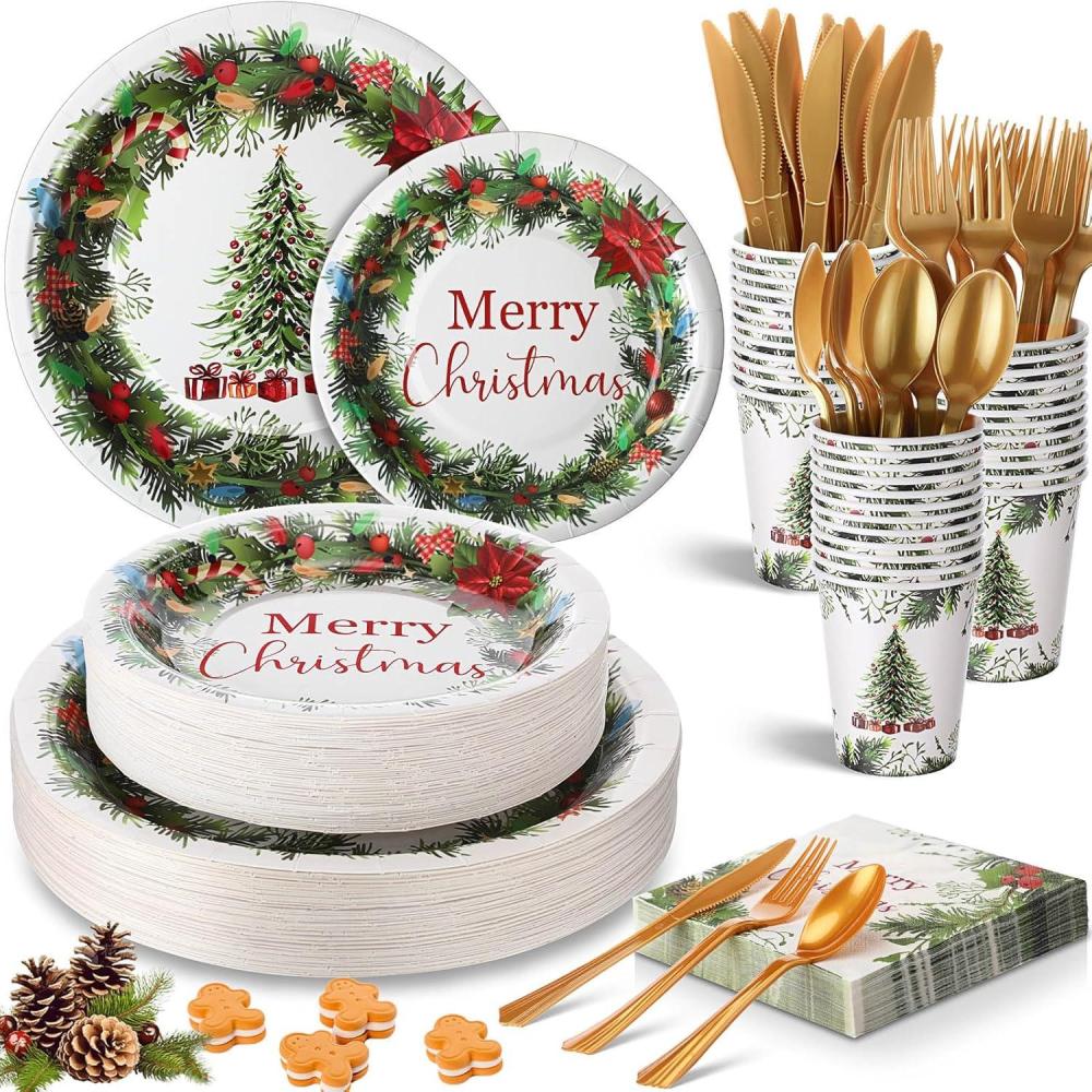 Our Christmas plates features plates in 2 convenient sizes: approximately 7 inches and 9 inches, ideal for serving different types of food. The cups have a capacity of approximately 9 ounces, ideal for both cold and hot beverages. These sizes are thoughtfully designed to cater to all your serving needs.