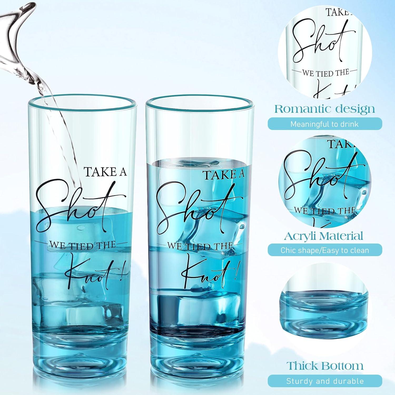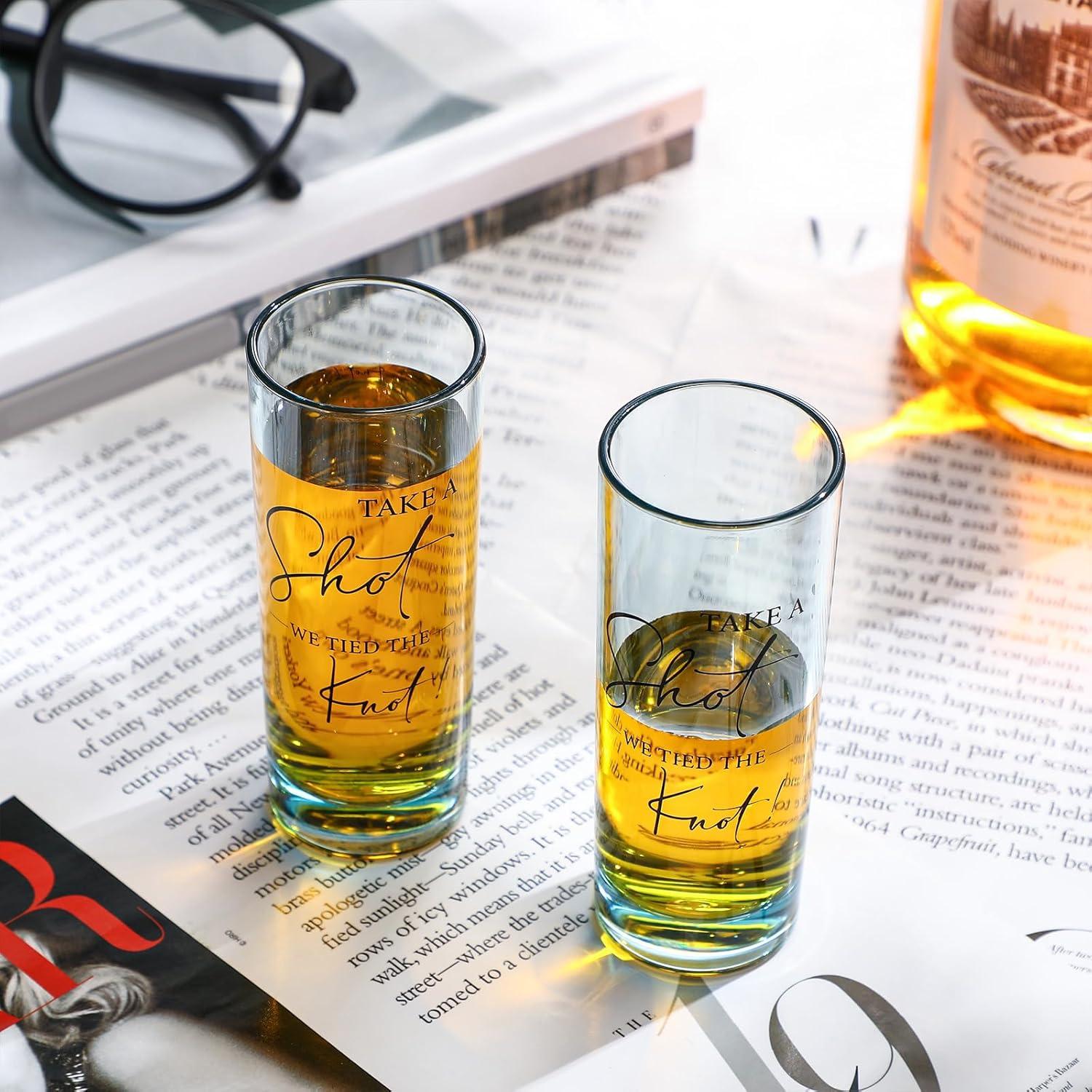 Elegant Clear Design: featuring a clear design, these vodka shot glasses are sure to catch the eye on most occasions; The text “Take a Shot We Tied the Knot” on the glasses not only magnifies the exquisite appearance of the glass, but adds a touch of elegance