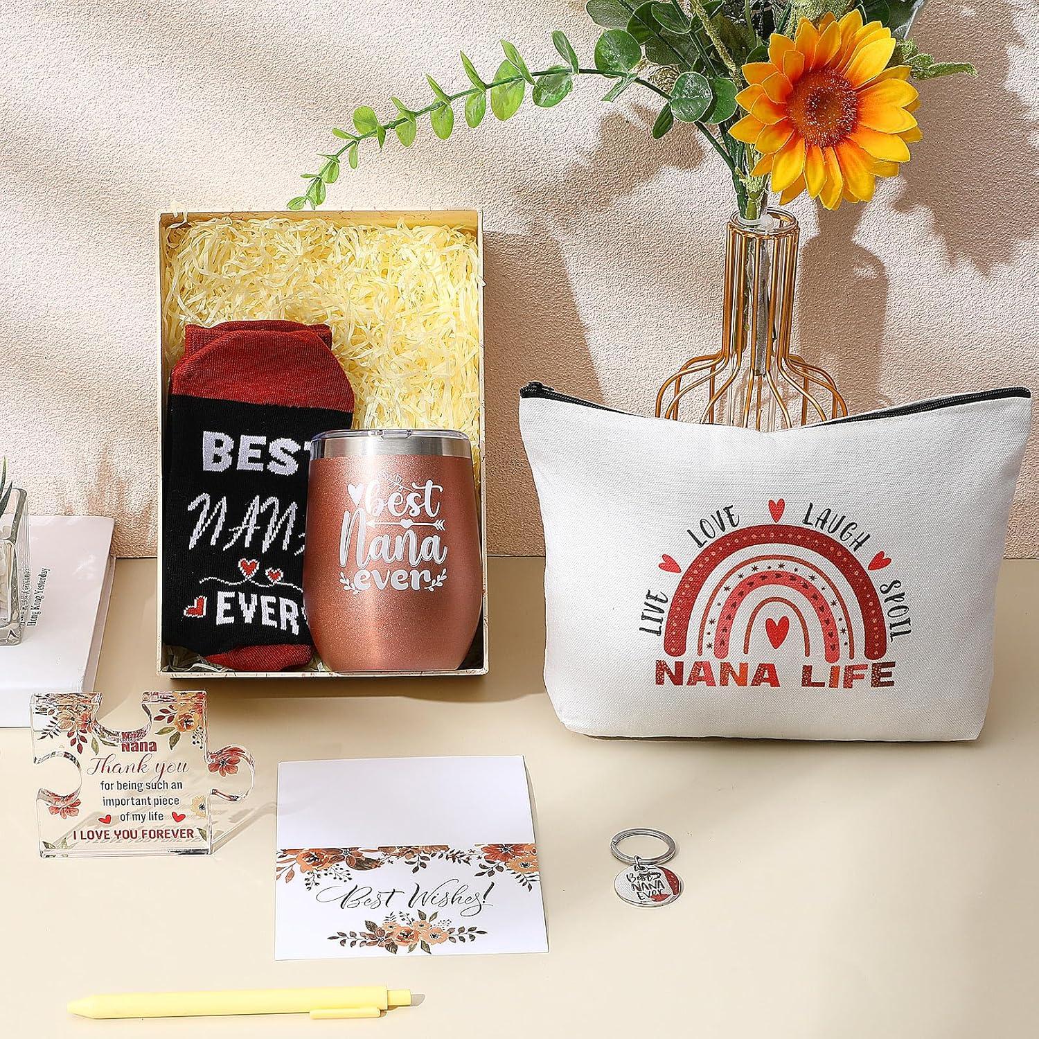 Sliner 7 Pcs School Bus Driver Appreciation Gifts for Women Men Stainless Steel Tumbler Keychain Sock Makeup Bag Acrylic Sign Blessing Card Box(Nana)