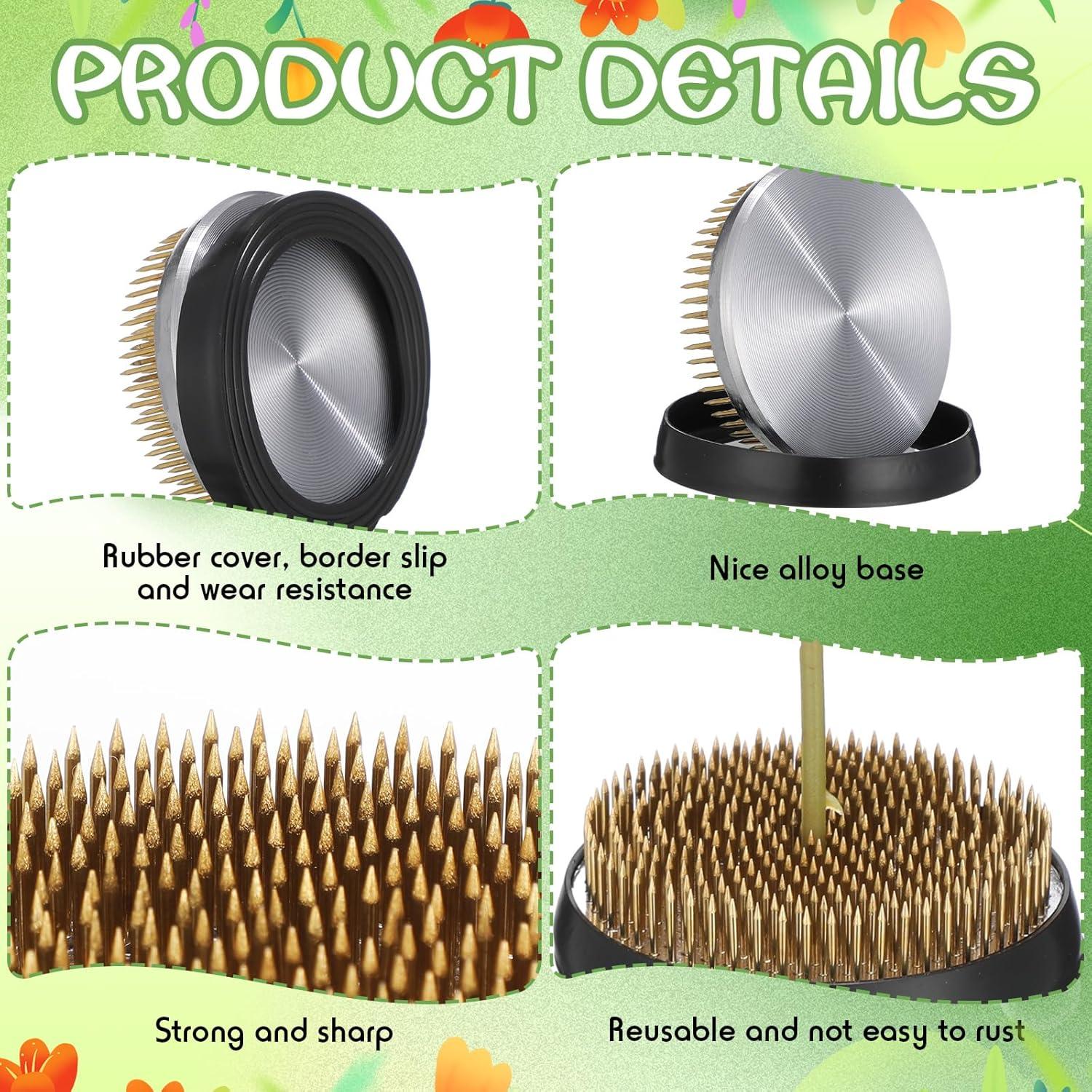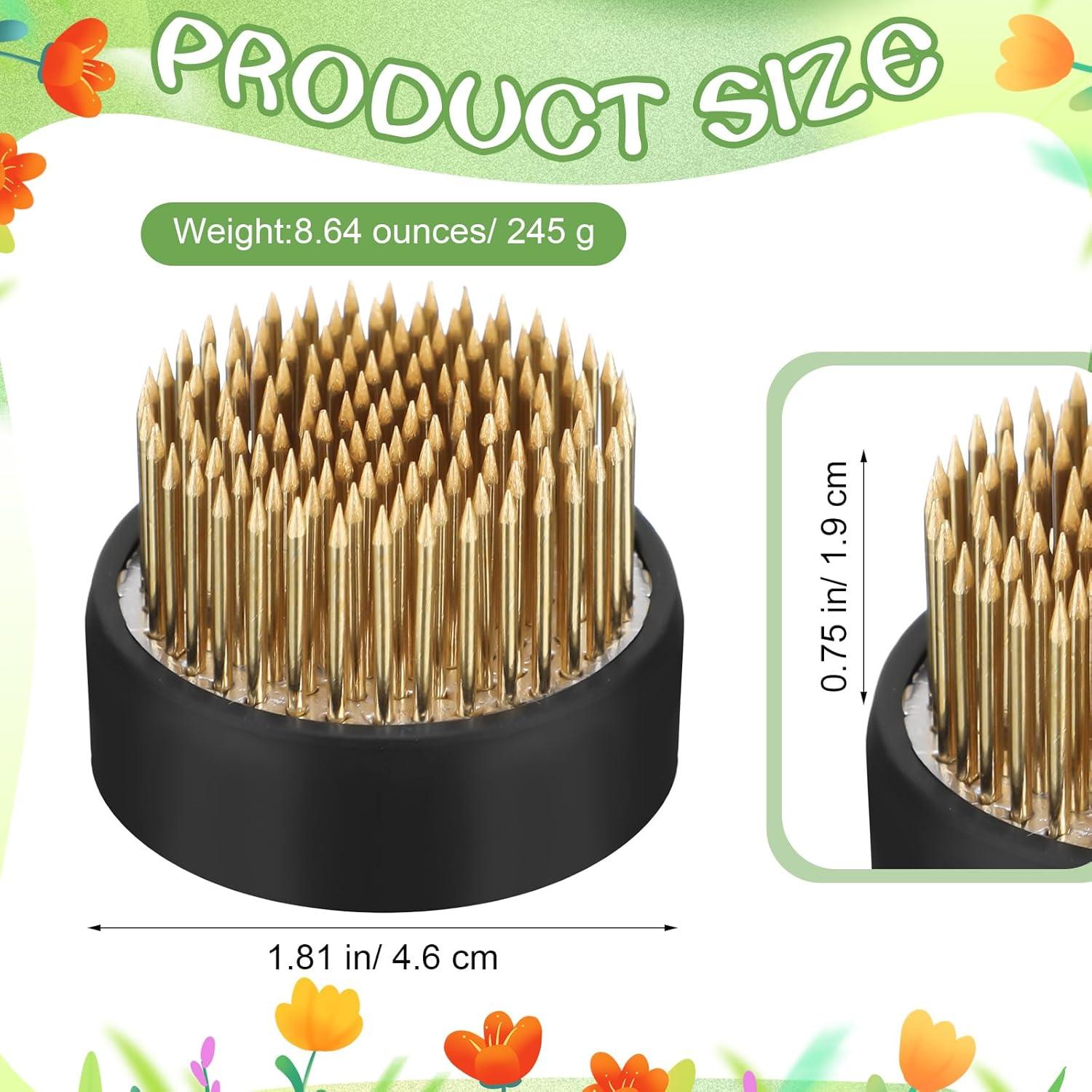 Brass Needles: these flower holders are made of brass, durable, and reusable; Sturdy enough to lay flat on surfaces and hold different flowers and branches in place; The brass needle is pointed enough to make it easy to insert the plant into it for preservation; They can add to your beautiful scenery; Please handle them carefully and keep them away from children