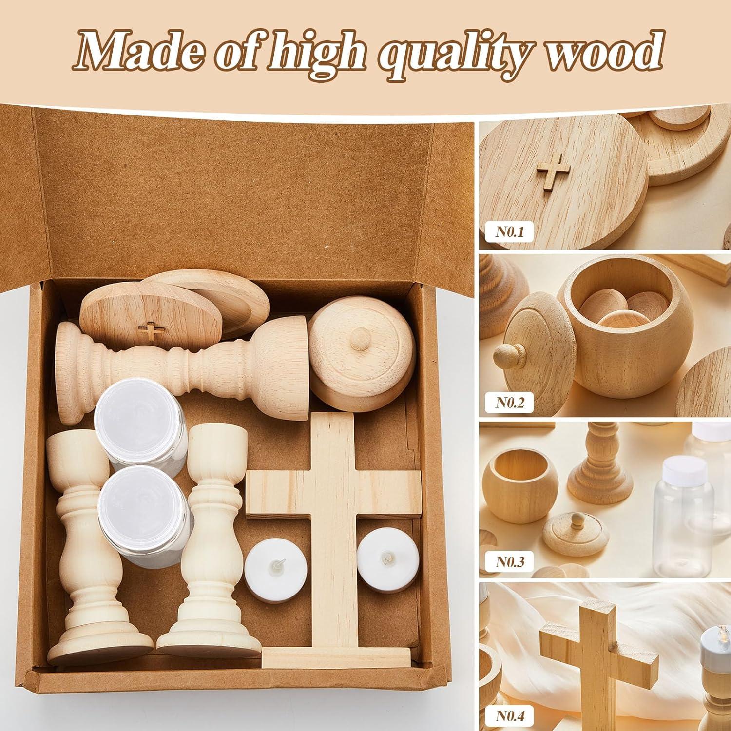 Quality Material: our communion set is mainly constructed from wood, the wood offers sturdiness and longevity, plus natural aesthetics, giving the kit a classic and appealing look that can mix well with environment while ensuring it serves its purpose for an extended duration