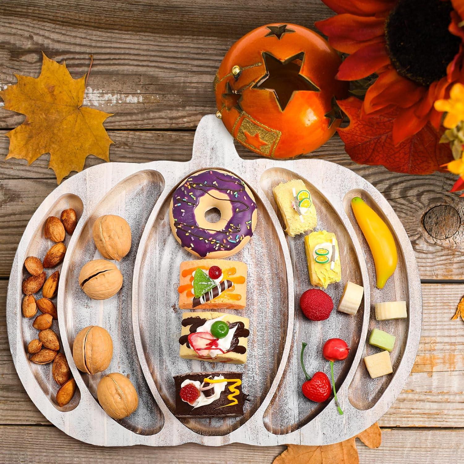 Pumpkin Shape Design: wooden tray is designed with the pumpkin shape and 3 grids, exquisite and delicate Thanksgiving elements, which is a theme supply for indoor and outdoor Thanksgiving parties, can make you and your partners more joyful to enjoy the party